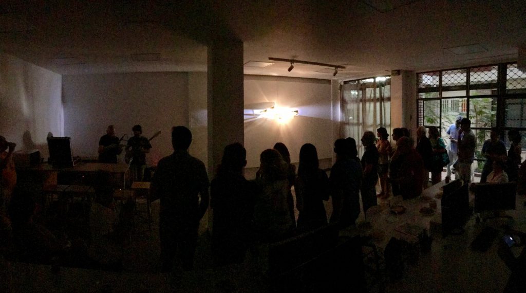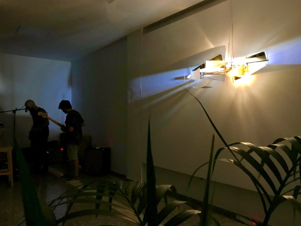 Enfrentar una escultura/lámpara como Caverna 7, de Paco Fuentes, fue una experiencia refrescante, ya que teníamos que traducir su disposición tridimensional en el espacio, sus materiales y la luz que desprendía en música.