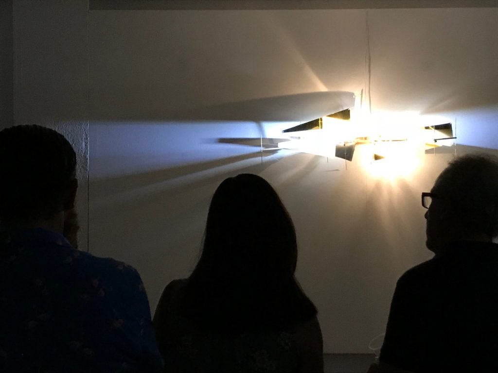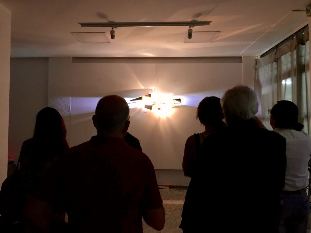 En un juego de tonos agudos que se filtran o no, que pasan o son bloqueados, que se reflejan o siguen su camino, acompañamos los trazados de la luz.