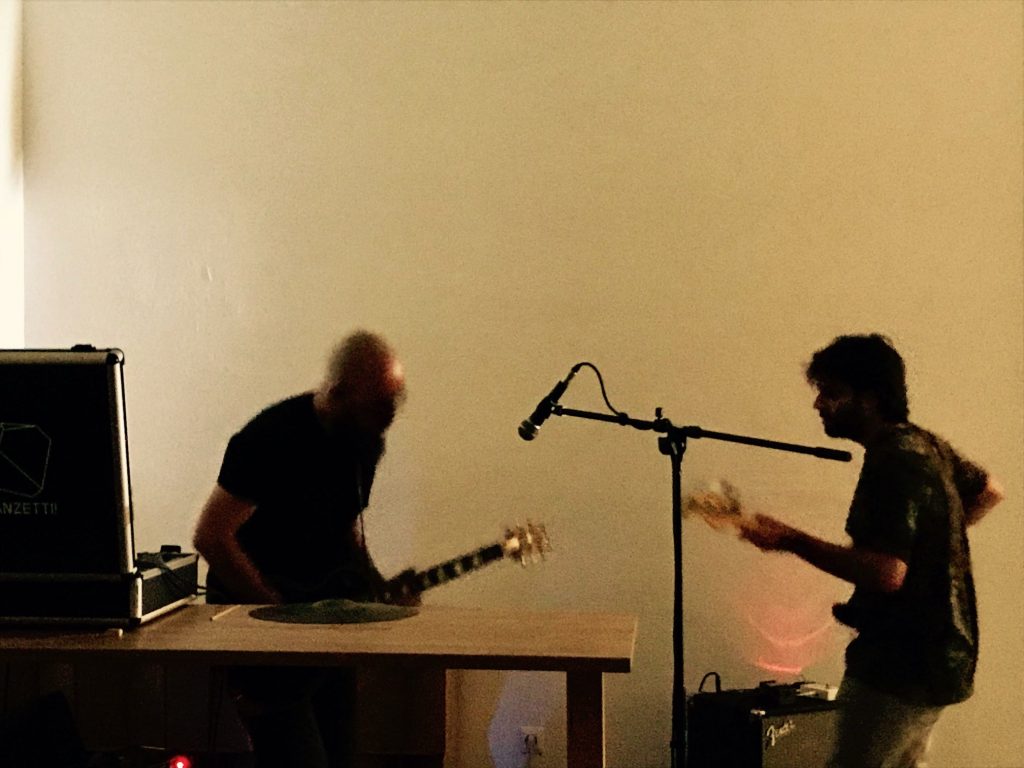 Decidimos generar sonidos con platos de batería y procesar nuestros instrumentos en directo para generar volumen y movimiento, como el barco metálico y brillante que nos inspiraba la obra.